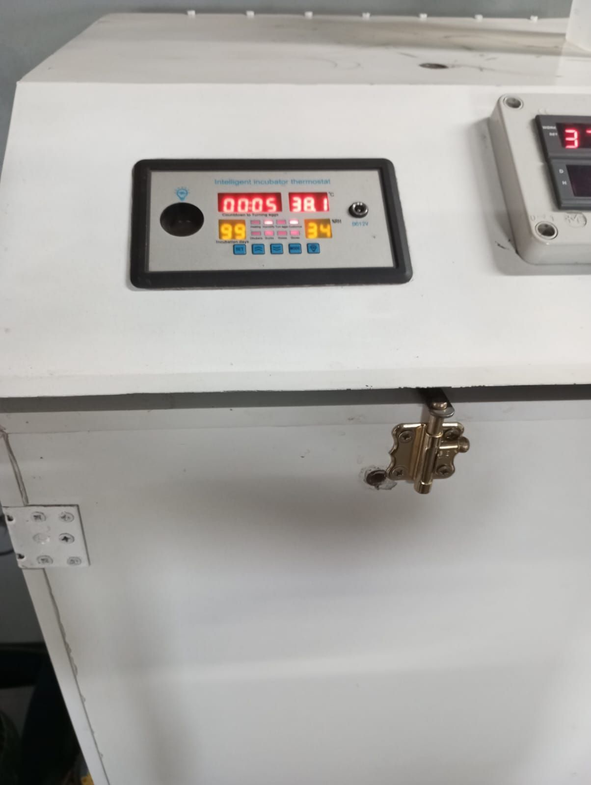Incubadora de aves de tres bandejas con capacidad para 50 huevos de gallina cada una de las bandejas , Tiene doble control automático de temperatura y humedad Tambien dispone de sistema automático de volteo de los huevos pudiéndose configurar al gusto el tiempo de volteo y los grados de de giro de los huevos , tambien dispone de sistema cooling ,diseñada y fabricada por Masmaquinas